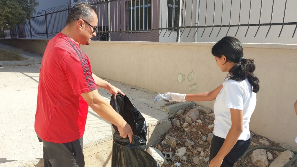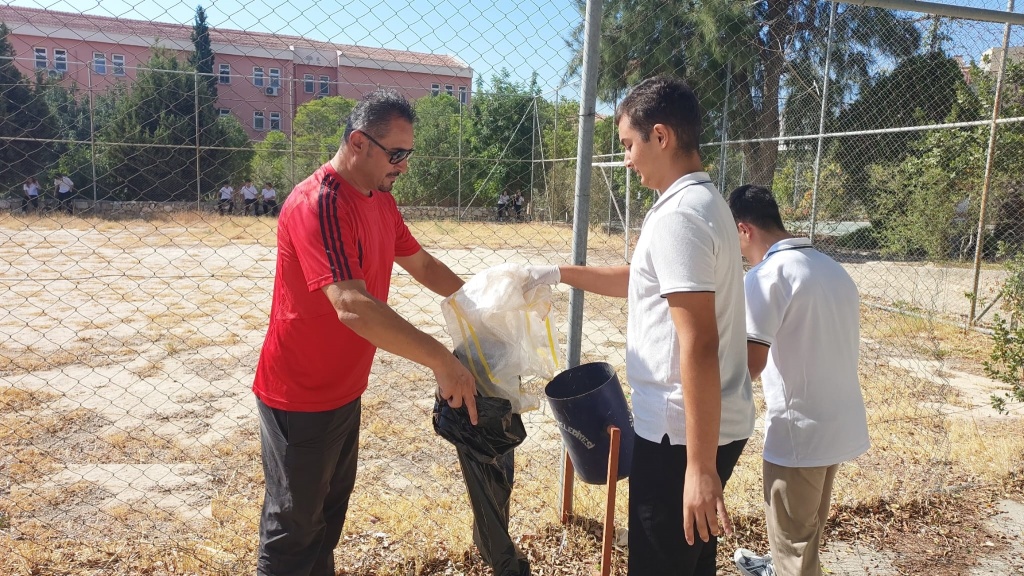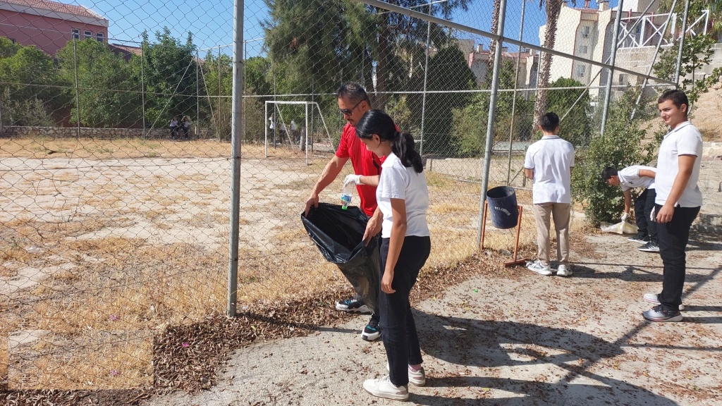"Okulum Temiz" Etkinliği kapsamında okul bahçesi öğrenci ve öğretmenler tarafından temizlendi.